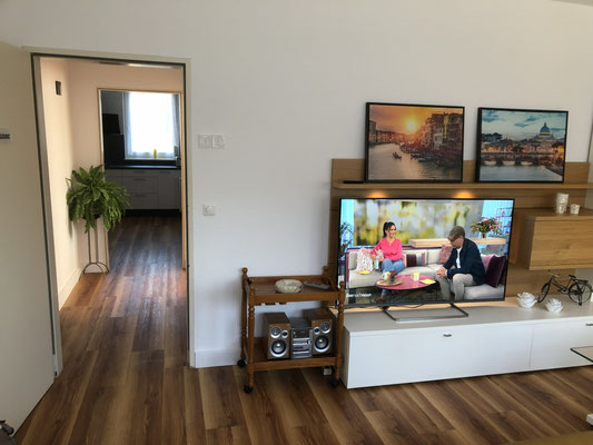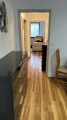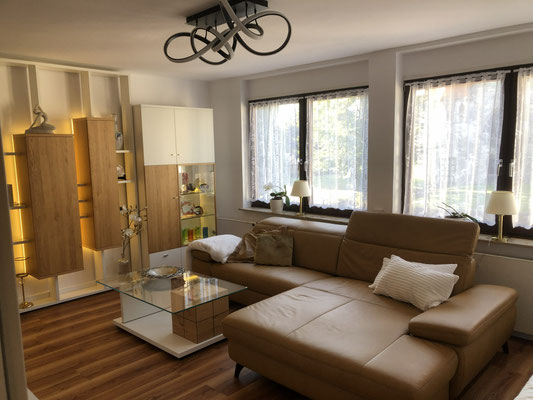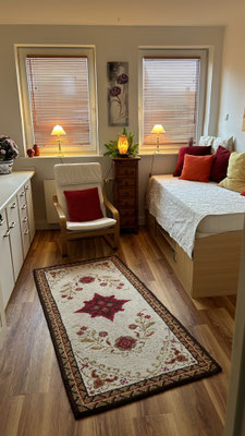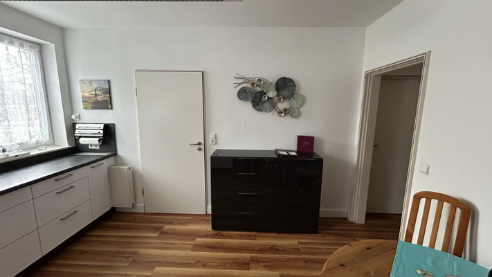 Die Ferienwohnung für 4-5 Gäste wurde in 2024 komplett neu umgebaut. Beim Umbau konnten wir die Räumlichkeiten optimal gestalten, so dass sie sich harmonisch in die Erwartungen unserer Gäste einfügen. Die Wohnung im Hochparterre hat 67m2 verfügt über einen eigenen Hauseingang, ein Wohnzimmer, ein Schlafzimmer mit separatem Zugang zum angrenzenden WC, eine Wohnküche und ein modernes, großes Badezimmer mit „Regenwalddusche“ und einem 2. WC. Optional kann ein angrenzender kleiner 1-Bett- Schlafraum bei Bedarf dazugebucht werden. Somit können bei Bedarf 3 separate Schlafräume gewährleistet werden.