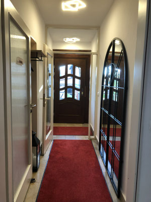 Einladend empfängt sie der separate Eingangsbereich mit einem roten Teppich.