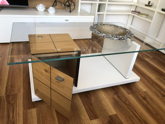 Darin befindet sich eine ausziehbare Schlafcouch für 2 Personen mit durchgängiger Matratze für einen erholsamen Schlaf sowie eine gemütliche Büffelledercouch zum Verweilen bei einem netten Fernsehabend mit dem 65-Zoll Smart TV, der in der hochwertigen Schrankregalwand integriert ist.